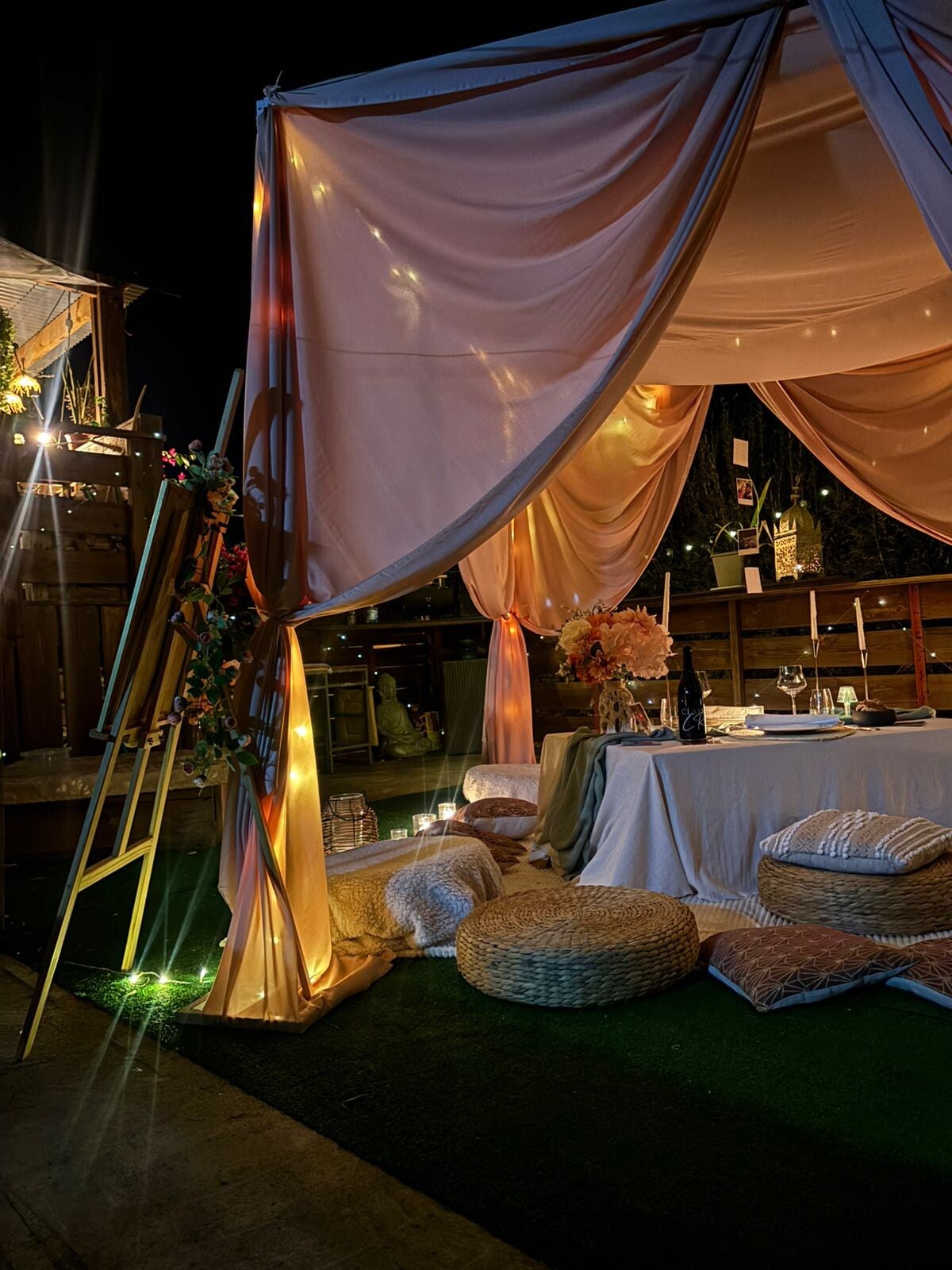 Nous transformons votre espace en un véritable havre de douceur et d'élégance, pour une soirée inoubliable pleine de convivialité, de tendresse et de gourmandise.
